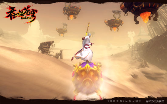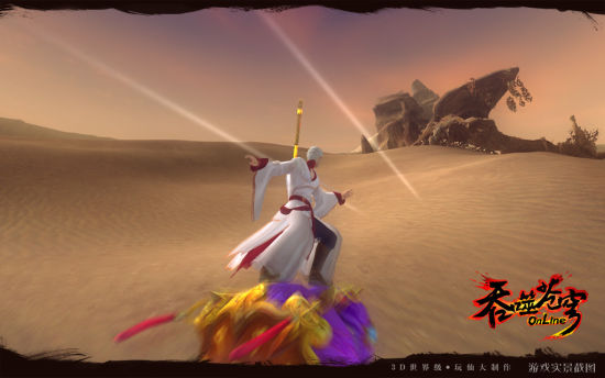 在《吞噬苍穹》迷雾沙洲这片广袤的沙漠中,你可以尽情使用飞行法宝进行沙坡滑翔,领略只有风和沙交织的异域情调。当人物在飞行过程时,细小的沙质颗粒会被大风扬起,在Vacuum真空引擎的作用下,打造逼真的临场感。周边的残枝树木、空气中过分的麦色金黄的即视感,让人仿佛置身于热带撒哈拉沙漠之中。