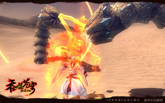 漫步在《吞噬苍穹》黄沙大漠,你也许会发现,在空中永远比陆地安全,因为在厚积数万尺的沙漠底层下,隐藏着众多不知名的凶猛生物,他们正等待着猎物的靠近。迷雾沙洲中的“巨沙虫”就是典型之一,坚硬密集的利齿,能将来往的行人通通吞噬,如食人花般饥渴难耐。它们习惯结伴出动,来者不拒,如果遇到它们的夹攻,及时潜逃也是不错的选择哦。