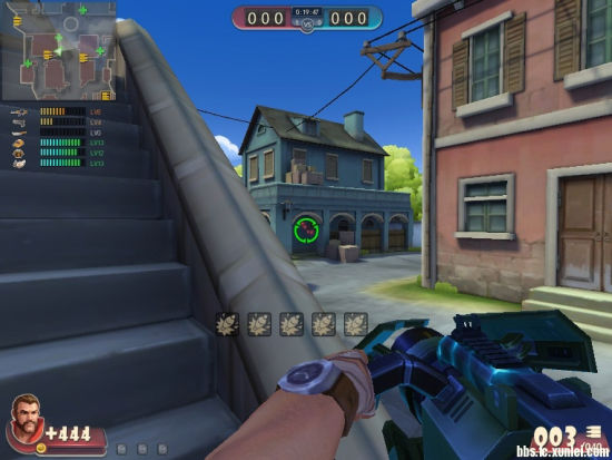 同样是敌人经常出现的一个地方,敌人和自己的附近都有血包,但是自己较为安全,小心楼梯上的敌人。