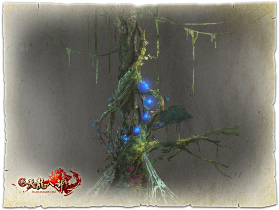 散发着诡异光芒的生物盘踞树上