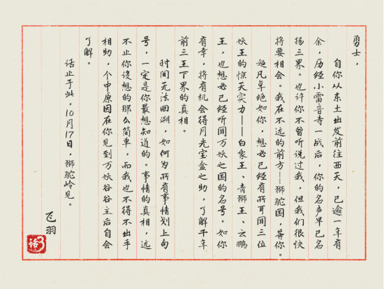 峰峦叠起、苍山连碧,极目远望不可见其尽头……这里,便是传说中的万妖之国狮驼国。在经历小雷音寺的挑战后,网易《新大话西游3》免费版的玩家们,很快就将踏足这片神秘的领域。而智略深远的飞羽早已抵达狮驼国,静候各位玩家的到来——为此,飞羽还于日前特别发了一封密信给大家,里面的内容正是大家亟需的狮驼岭50级新副本的机密情报!