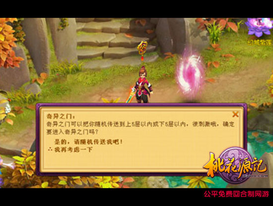 游戏截图在6~18层会出现奇异之门,可以在上下任意5层内随机传送。活动内层数越高,怪物掉落的钥匙数量也越多,人物出场时获得的钥匙自动兑换成经验。活动内遇见“般若大仙”会有意外的收获。消灭各层的明雷怪物可以获得活动道具,道具只限在活动场景内有效,在活动时间内到达第30层,与芳菲对话可获“般若金丹”;第一名的队伍可获得超级兽决。