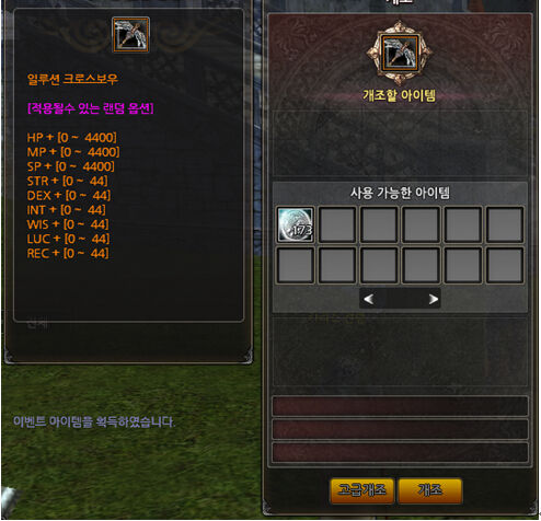 原有的“属性卷轴”强化版本,包含原来的选项,共3种选项中,可以选一。这样,即使显示不需要的选项,也可以选择原来的选项,是个没有负担的道具。经过调整后的属性卷轴功能有:1.新增显示道具随机选项窗。2.可以确认,登陆在改善窗的相应装备的选项最大值。3.登陆“完整的属性卷轴”,“高级改善”窗会活性化。4.点击“高级改善”会消耗1个“完整的属性卷轴”。
