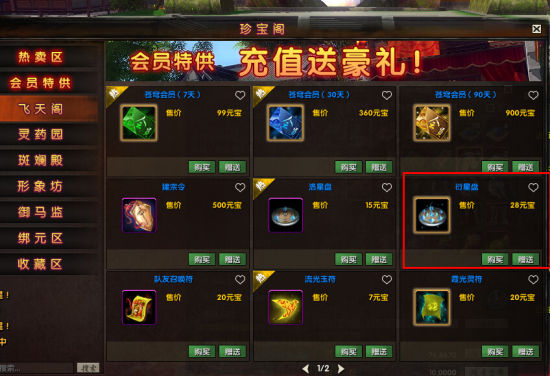 仙友们可以打开珍宝阁,在珍宝阁中购买洛星盘或者衍星盘,洛星盘只能传送2个地点,衍星盘可以传送6个地点,建议爱好跑商的人买个衍星盘比较好,这些都是跑商过程中,为减少跑地图,提高跑商效率的必备定位和传送工具。