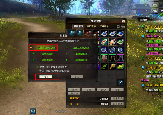《吞噬苍穹》衍星盘定位和传送第三步:依次在太昊城、汀州、崖州、洪州进行跑商买卖