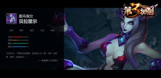 贝拉里尔是一个紫色倾城、博学多才的女子,有着显赫的祖先和家族她,也有着极大的野心。为了达成权欲的最终目的,她修炼失传已久或被禁止使用的邪术,并炼制了魔药——“漩涡之吻”,控制男性为她所用。萌版的她,更是天使面容魔鬼身材,任何战场的男人都逃不出她的剧毒。
