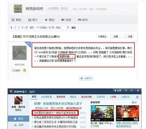 登陆界面神似LOL 昨天,由于网络传播热度极高,游戏门户网站、百度贴吧纷纷也加入了这场传播战之中: