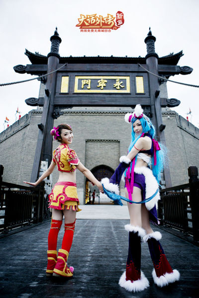 在网易《大话外传新篇》六周年庆典之际,官方曾经举办过一场为大外送生日祝福的活动。其中,来自“一生有你”服务器的灵子和“仗剑天涯”服务器的蓝灵,在众美女玩家中脱颖而出,成为美女玩家代表!在参加完10月的西安盛宴后,这两位姑娘也如约为《新大外》拍摄了一组游戏主题的写真集——两位美女的香艳可人,直看得旁观者鼻血狂喷!