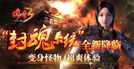封魂系统全新降临三年间,无数勇士在玛法大陆感受激情,体会真情,2014年6月,《传奇3》不负众望,再次创新推出可以变身怪物的封魂系统,让玩家在提升自身能力的同时,体验畅爽的战斗感觉。