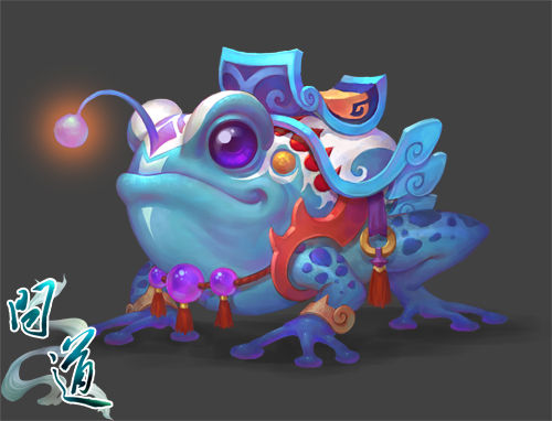 吉祥蛙原画1、萌宠篇之吉祥蛙,头顶八角玲珑灯,一身琉璃宝翠,周身隐隐碧色青光环绕,萌意十足,在萌的同时,吉祥蛙也象征着好运的到来,它会给道友带来“幸运之神”的祝福。