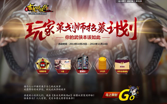 你也有机会扬名立万除了游戏中的线上活动,《真古龙》发号专题现已上线,没有获得内测资格的亲们可要抓紧机会了,多重游戏礼包更将帮助玩家早日成为古龙大侠,现在注册更有可能获得IPHONE6哦!《真古龙》作为一款汇集当下流行元素的游戏,其中也有不少来自玩家的创意。为了将游戏版本更好的进行本地化,官方也特别推出玩家策划师活动,只要大家提出的玩法、设计够新潮够大胆,就有机会成为游戏中的一部分,当然丰厚奖励也是必不可少的!