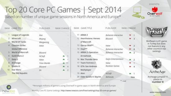 2014年九月北美与欧洲市场核心PC游戏排行榜前二十名 门票