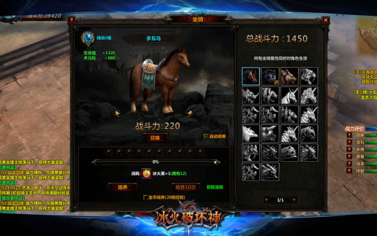 商城提供骑乘种类选择养成依赖于冰火果