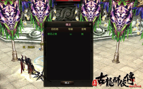 在阵营接待处,玩家可以接取阵营任务,系统会根据玩家的等级将玩家传送到相应的目的地。如下图,玩家被传送到对应等级的禁忌之地。