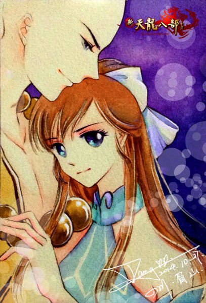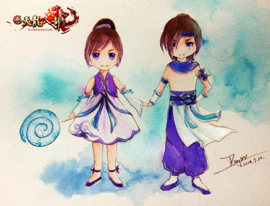 玩家“风中叮铛”是为天龙绘制同人作品的常客了,这次她发布的新作包括高大上的明教妹纸、清风怡江系列萌版子女时装、时装雪羽霜衣等等,堪称题材各异,风格多变。尤其是她为走向婚姻殿堂的游戏情侣,特别绘制了一张明信片,送上一份来自天龙的祝福,让两位玩家朋友的形象跃然纸上,栩栩如生。
