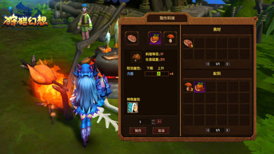 料理制作界面做任务拿经验、做料理玩休闲,丰富的营地玩法是否已经让你迫不及待的想要体验一番了呢?赶快加入《狩猎幻想》中的猎人团队吧!或许下一位满级大神、料理大师就是你!