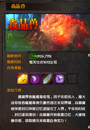 炎晶兽产出太昊令30级世界BOSS炎晶兽