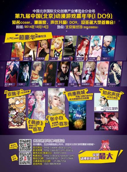 中国北京国际文化创意产业博览会分会场暨第九届中国(北京)动漫游戏嘉年华(I DO9)即将于2014年12月14日在北京展览馆盛大开幕,超强阵容精彩活动纷纷联机上线,等待与喜爱动漫的漫迷朋友组团进本,一起刷通年末动漫狂欢大副本,脱团、豪礼、手办、嘉宾签名合影、靓丽coser等奖励几率掉落,还在等什么?!