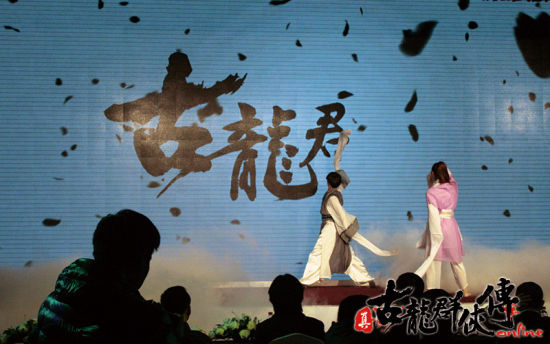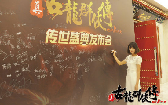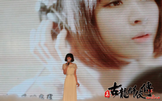 不删档启动仪式发布会上很多节目都给人留下了深刻的印象。本次发布会别出心裁的采用墨舞来勾勒出《真古龙》的logo。当红车模金小小猫以cos魔女青青的形象展现在观众面前,现场采用3D环绕屏幕,将游戏角色环场飞行与真人亮相结合起来,让人大开眼界;游戏主题曲《龙战江湖》也是在发布会上进行了首唱,90后新星阿悄以其不带丝毫浮夸的纯净嗓音诠释了古龙文化独特的浪漫情怀。演唱结束后,阿悄还表达了对不删档的期待与祝福,大家在轻松愉快的气氛中拉近了彼此的距离。