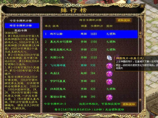 另外,开卡牌需要“紫金龙鳞”,我们从所需“紫金龙鳞”数量上来计算,前者210天*300=63000颗龙鳞;而后者则是30000*3+20000=11万龙鳞。显然,前者更省钱。当然这还不算后者令牌是随机部位这一设定,万一出几次部位相同的令牌,可就不是10天就能攒到足够令牌的了。所以,笔者建议:如果你不急于一时的话,选择每天300卡牌积分,要划算得多。