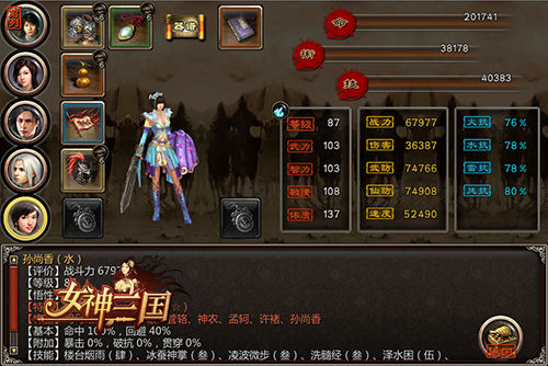 在《女神三国》中,女将也能当先锋!说起来热门人物,被亲切的叫做孙妹妹的孙尚香同志可是不遑多让。她有着姣好的身材和非常不错的外形,作为一名水系武将,在队伍里的地位举足轻重,本身自带技能枭姬乱舞进行魅惑嘲讽,能够很好的踢主T分担伤害,几乎所有的玩家在游戏初期将其作为战阵中最重要的一员。而在游戏的后期,作为蓝将的孙妹妹也能够升金学习泽水困和破碎虚空,减对手命中和闪避增加自己的闪避几率,能够很好的承担队伍中主T的角色!是的,你没看错,美丽的孙妹妹可以作为主T!