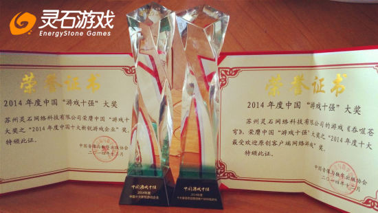 获奖图灵石游戏作为一家专注于网络游戏、移动游戏开发和运营的互联网游戏公司, 拥有功底扎实的研发团队、经验丰富的的运营团队及强大的渠道资源背景支持。《吞噬苍穹》作为灵石游戏首款修真题材的大型3D MMORPG,以全新修仙概念的驭法宝飞行,360度立体战斗,高度还原修仙小说的经典玩法,成为众多玩家竞相追捧的大热门。同时,公司一直以来致力于为全球玩家提供高端、精品的网络游戏及数字娱乐产品,将最好的游戏内容和最优质的服务提供给全球玩家。