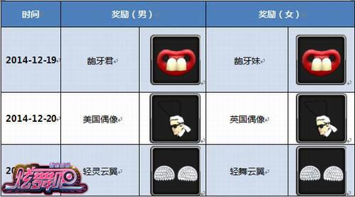 《炫舞吧》活动奖励《炫舞吧》冬日周末精彩活动火爆进行中,除登陆、在线、任务活动外,年终最后一期的周末拍卖活动也将华丽登场。如此具有诱惑的活动,你还在等什么?