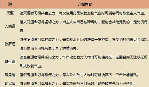 选择超脱的宠物和超脱类别以后提交鬼灵珠给转轮王,进入轮回任务场景,宠物死亡视为失败;战胜守护使以后,宠物可学得通过轮回试炼对应道的轮回技能。