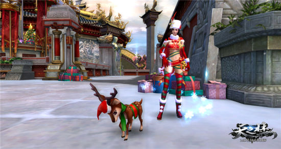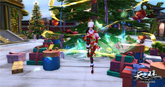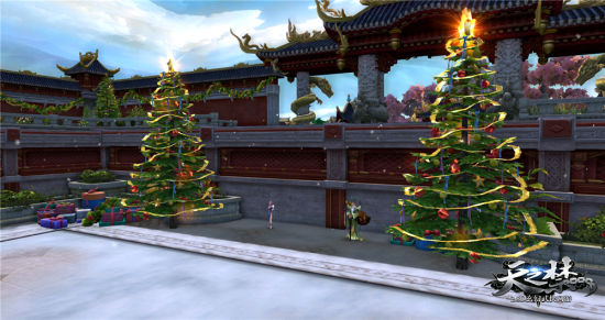 五方城不仅仅是江湖中侠客美女栖身的避风港,很多时候,它还给人以家的温暖。圣诞期间,原本古色古香的五方城迎来了大改造,对于玩家而言,可说是发生了翻天覆地的变化:洁白的街道与古朴的楼台,在圣诞树的点缀下,洋溢着一片节日氛围;战场副本NPC周围堆满了各色大大小小的礼物,成为了五方城最大的快递中转站;原本朱红色的墙垣上,赫然可见白色的"merry christmas"大字与一个个造型精美的礼盒。五方城的全新景致,让人耳目一新,赏心悦目。