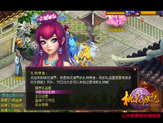 在2015年1月1日元旦节当天,等级达到30级以上的玩家,登陆游戏后可在天熙城“礼物使者”(183,159)处领取元旦大礼包。内含金券、经验、银券和物品,预祝各位小伙伴们新年快乐!