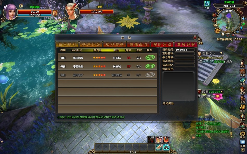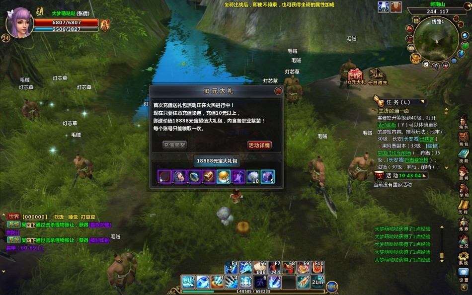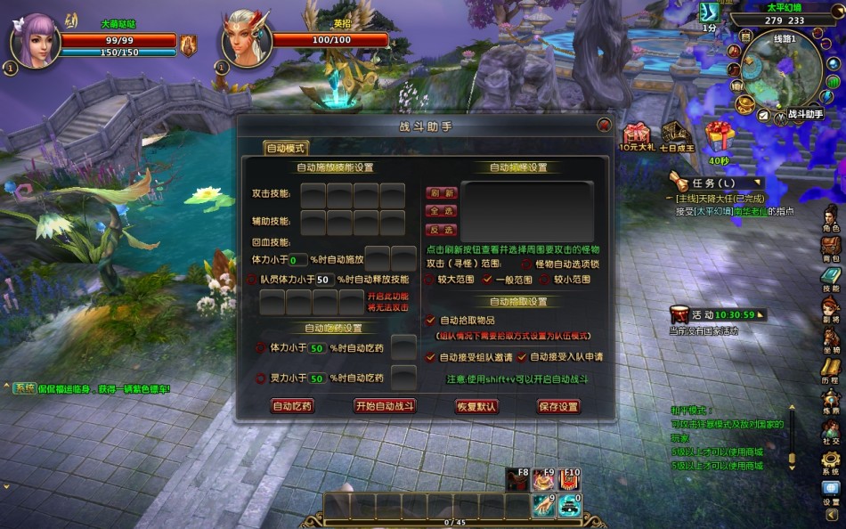 目前的国产游戏都是采用的键鼠结合的操作模式,主要是简单易上手的特性符合当下被各种快餐式网游洗脑后的手残玩家,当然也提供了按键修改的设定以方便各类玩家的需求。国产游戏中自动寻路和内挂是必不可少的,不过需要注意的是点击地图自动寻路的时候要注意角色,有时候可能会跑入一个死角后就出不来了,如果是任务期间不能使用回城等操作的时候只能放弃任务。游戏中的任务并不多,但是期间并没有出现任务断层,主要还是玩家升级速度较快,后期可能会被技能升级拉低升级速度。