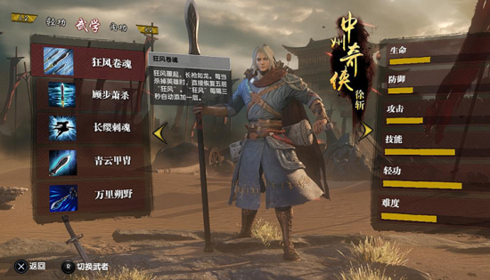 招式四:万里朔野徐斩招式四 “万里朔野”:徐斩手握长枪长距离冲锋,对沿途所有敌人造成大量外功伤害,此招消耗4层狂风。