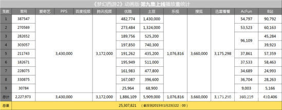 《梦幻西游:天命之战》自上线以来就受到了无数梦幻玩家以及中国动漫界的双重关注。上线第二周,播放总量就突破了千万大关。据最新统计,截至2015年1月23日22:00,第9集更新,视频总点击量突破两千五百万次,为玩家提交了一份成绩骄人的完美答卷。