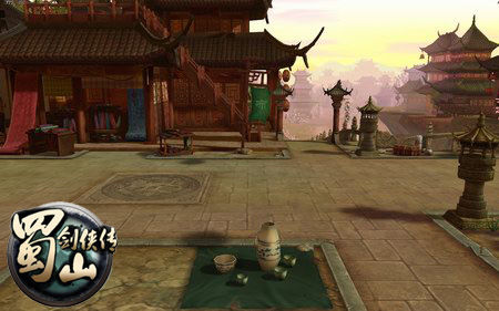 《蜀山剑侠传》运用独特的3D物理引擎,将游戏画质渲染的极为精细。近处的石灯与瓷器质感十足,中间一座布匹店古味十足,斑驳的瓦片与木质梁柱的纹理都清晰可见,远处塔楼雾气萦绕。此般高还原度精细建筑,给玩家极强的带入感。