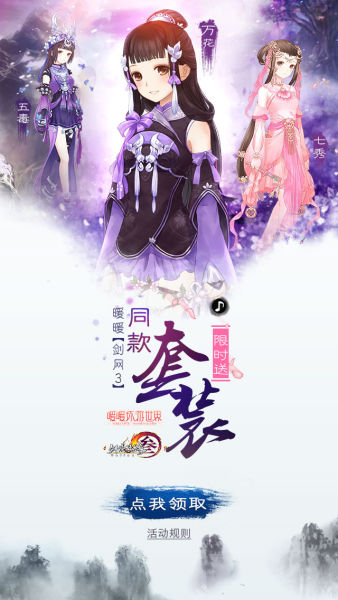 暖暖七秀套《暖暖环游世界》的设计师为暖暖精心设计了《剑网3》三大门派同款经典武侠套装,玩家只需同时关注《剑网3》和《暖暖环游世界》的微信公众号,即可参与活动,在《剑网3》微信公众号中发送“暖暖”,玩换装小游戏,就能免费获得暖暖《剑网3》同款门派套装!同样,玩家在《暖暖环游世界》的微信公众号中发送“剑网3”,即有机会获得《剑网3》虚位交椅、万花脑人等更多豪华大礼哦!