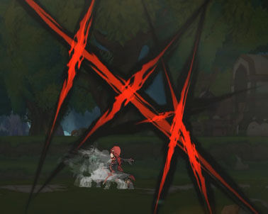 向前方进行切割空间的剑击按住技能键可追加消耗HP施放连锁攻击(HP不足20%时可不消耗HP发动)