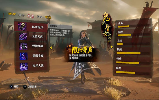 图4(招式四:吸星大法) 冷风萍招式四“吸星大法”:冷风萍激发此招后,冲向敌方目标武者,将其控制住,无法动弹,并且持续造成大量内功伤害。