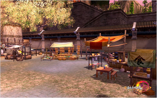各色百货备齐技艺大师将入驻广场北面,他们建起熔炉、裁缝铺和各色工作台,为侠士们传授庖丁、烹饪、神农、医术、刺绣、印染、缝纫等实用又赚钱的生活技艺。蔬菜商、杂货商、仓库和商会的分号纷纷加盟,免去侠士来回奔波的烦恼。