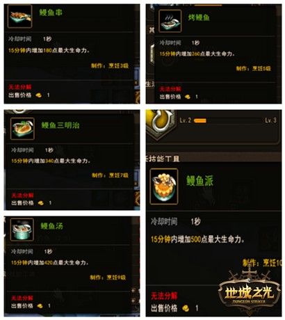 鳗鱼食品,增加最高生命值,在现在体力符文缺乏的情况下,小短腿们可以考虑在下本前买一点堆HP最大上限的美味鳗鱼食品哦。