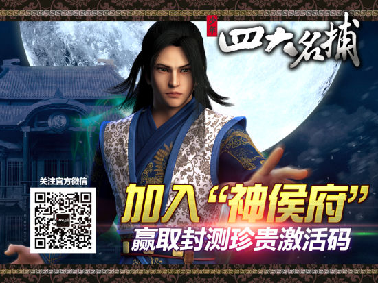 《四大名捕》关注“神侯府”微博赢取激活码3月17日《新少年四大名捕》电视剧正式开播,而联合跨界推出的网游《四大名捕》,也将在随后开启首测。届时;这个神秘且疑云重重的诡异江湖,又会给玩家带来一次如何与众不同的冒险呢?那就让我们拭目以待——3月25日、新概念武侠网游《四大名捕》首测开启!