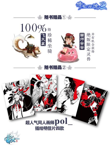 二重礼:超人气绘师pol_亲绘倩女明信片,美艳帅气的人物神韵,标志性的红与黑,一套4款,购书即赠!