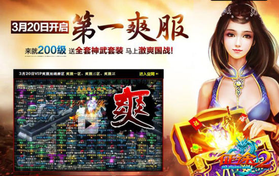 《征途2》爽服来了,不用升级,登录直接200级满级;送2套带星神武装备:有星星,灵魂全激活,送宝石等;每天上线不用做任务,上线即可直接PK、打国战。