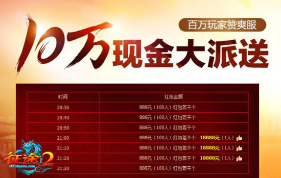 爽到根本停不下来不仅仅只针对游戏里,《征途2》爽服的G点是从里到外全方位的哦,这不,为了能让大家玩的更爽,《征途2》项目组专门拿出10万现金助阵,全民抢钱零门槛,比的只是手速。