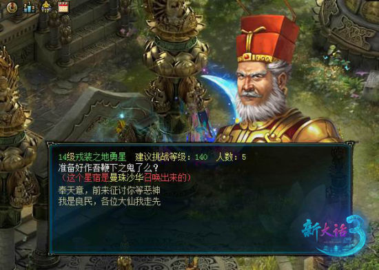 推荐挑战等级高达140级,且建议玩家组齐5人队后再进行挑战……这样的标准,放眼整个《新大话3》世界也不多见,足以说明戎装地勇星的挑战难度至高。