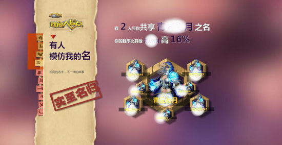 “最常用英雄”瞬间暴露你的喜好!这是一种选择,是执着,也是对自我的再次审视。“炉石地图”,你所处地区的玩家在全国炉石排名英雄中排名第几?炉石有知己,天涯若比邻。“有人模仿我的名”,有多少人与你共享名字中的字,相同的名字,不一样的故事,看一看你的胜率比其他人高还是低,具体又有多少!趣味数据,另类解读,了解你自己,兴趣你说了算,地区排排名,知道分实力,共享同样名,有缘比比看。
