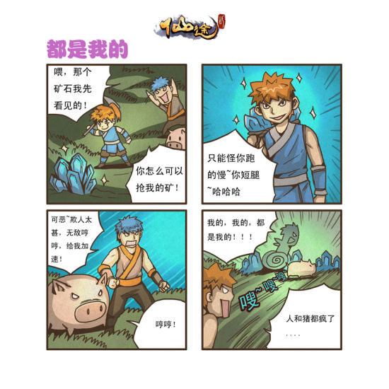 仙途2这三副四格漫画分别讲述了无畏哼哼、呆头钝钝、幻魅灵猫这三种宠物的幽默小故事。