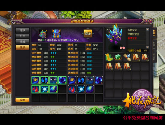 《桃花源记》召唤兽技能继承界面继承设定人性化 根据不同需求消耗卷轴