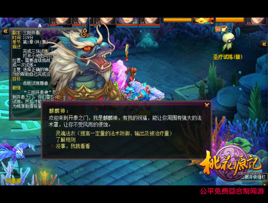 《桃花源记》是由深圳淘乐研发运营的公平免费回合制网游,也是业界首款无商城回合制网游。游戏将公平作为核心研发理念,珍惜玩家游戏时间价值,首创“公平世界”概念,打造一个人人平等,天道酬勤的游戏世界!新回合百科全书式玩法,集回合玩法大成,继承经典,不断创新!带给你更公平的游戏世界,更纯粹的游戏乐趣!