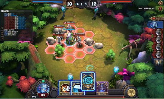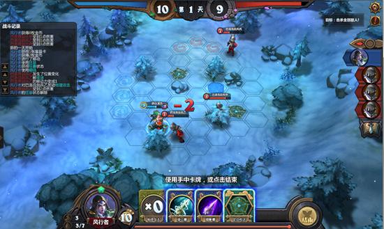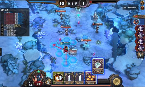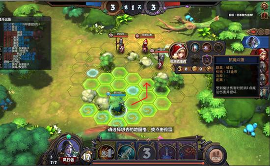 1.位移到下图地点,使用狂暴卡片后用普通攻击攻击敌人;用暗影箭将敌方击晕;进入第二天,用穿云箭击杀敌方。