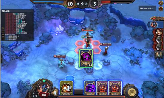 分析:对面耐久为3,只需击杀一名敌方即可。忍者2血,而敌方士兵的移动距离为4,这意味着如果不能很好利用地形走位,很容易被击杀。敌方法师不能移动,且技能冷却未好,我们可以在敌方法师那边并设置路障,来完成走位规避敌方进攻。
